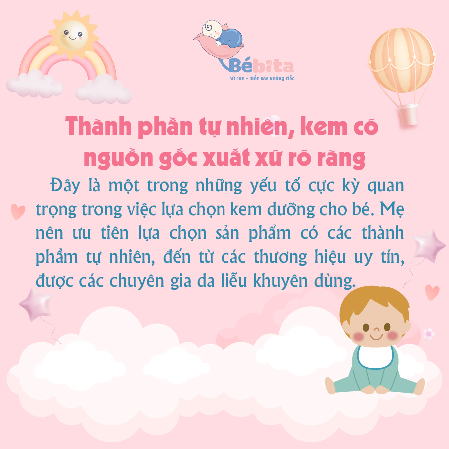 💡Thấu hiểu được nỗi băn khoăn đó, BÉBITA gợi ý đến mẹ 5 bí quyết để mẹ chọn cho bé loại kem dưỡng phù hợp.